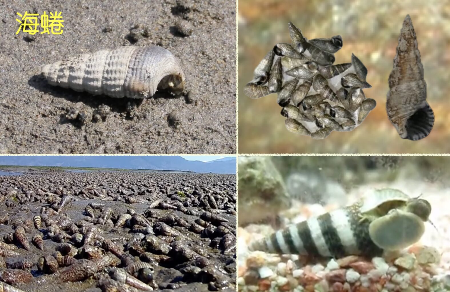 海蜷體型細小、棲息於鹽鹼灘或泥灘,常於春季海藻盛發之時聚居爭食。§ 海蜷一族