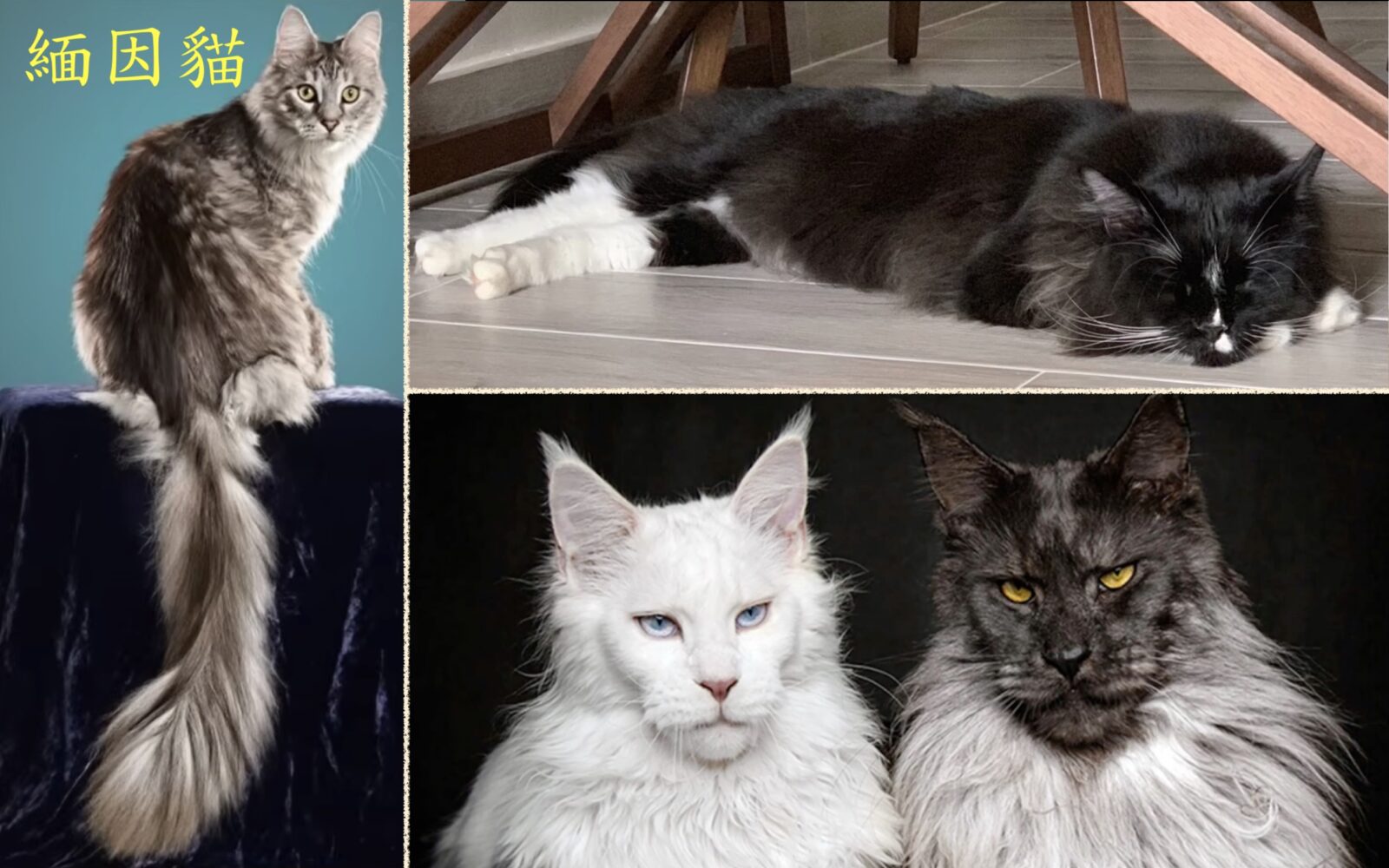緬因貓(Maine Coon):體型龐大,但性格溫和親人,被稱為「溫柔的巨人」。